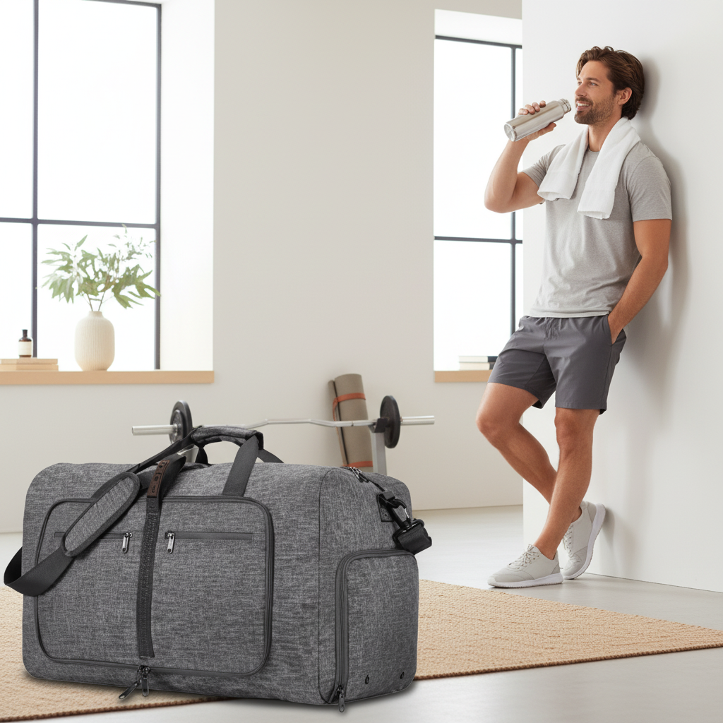 Experience seamless travel with this foldable duffel bag, expertly designed for organization and convenience. Its lightweight, waterproof build ensures ease and comfort during any adventure you embark on.